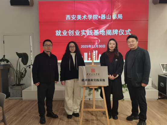 首先,刘荣书记与周维娜教授一行来到了器山书局校友企业并进行就业创业实践基地授牌。作为一家集书籍销售、文化传播与设计体验于一体的复合型书店及艺术博物馆,能为学生提供研学、体验式工作坊和研讨会的场所,以其独特的设计理念和浓厚的文化氛围给访企团队留下了深刻印象。